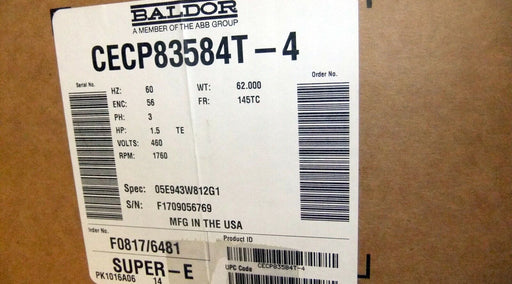 View full detailsBaldor 1.5 HP Foot Mounted Motor CECP83584T-4