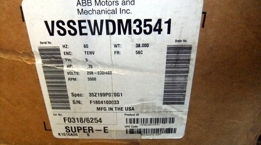 BaldorCondition: New Condition Description: Manufacturer / Brand: Baldor DescriptionDESCRIPTION:Baldor .75 HP Motor VSSEWDM3541NEW in boxROW11-A3**IM...