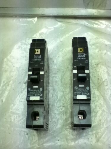Square DCondition: Used Condition Description: Manufacturer / Brand: Square D DESCRIPTION:. EDB14020 LOT OF 2 SQUARE D EDB14020 CIRCUIT BREAKERS. NO BO...